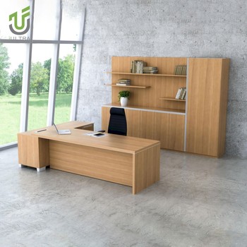 Iultra đơn giản MDF MFC sồi bàn điều hành, bàn quản lý tối giản hiện đại, bàn điều hành thiết kế hình chữ L lớn